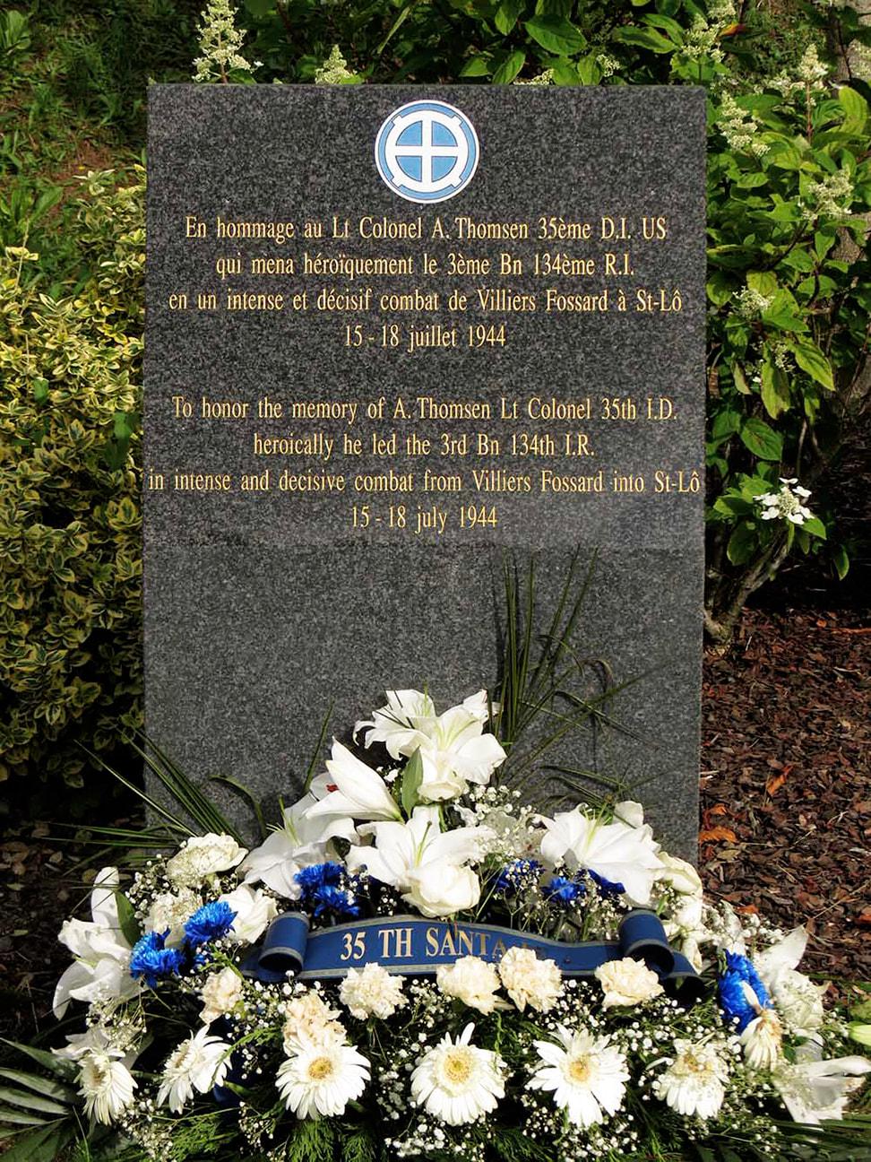 The site has a monument commemorating Lieutenant Colonel Alfred Thomsen who served as the commander of the 3rd Battalion, 134th Infantry Regiment, 35th Infantry Division during a battle that took place from Villiers Fossard to St-Lô in World War II.