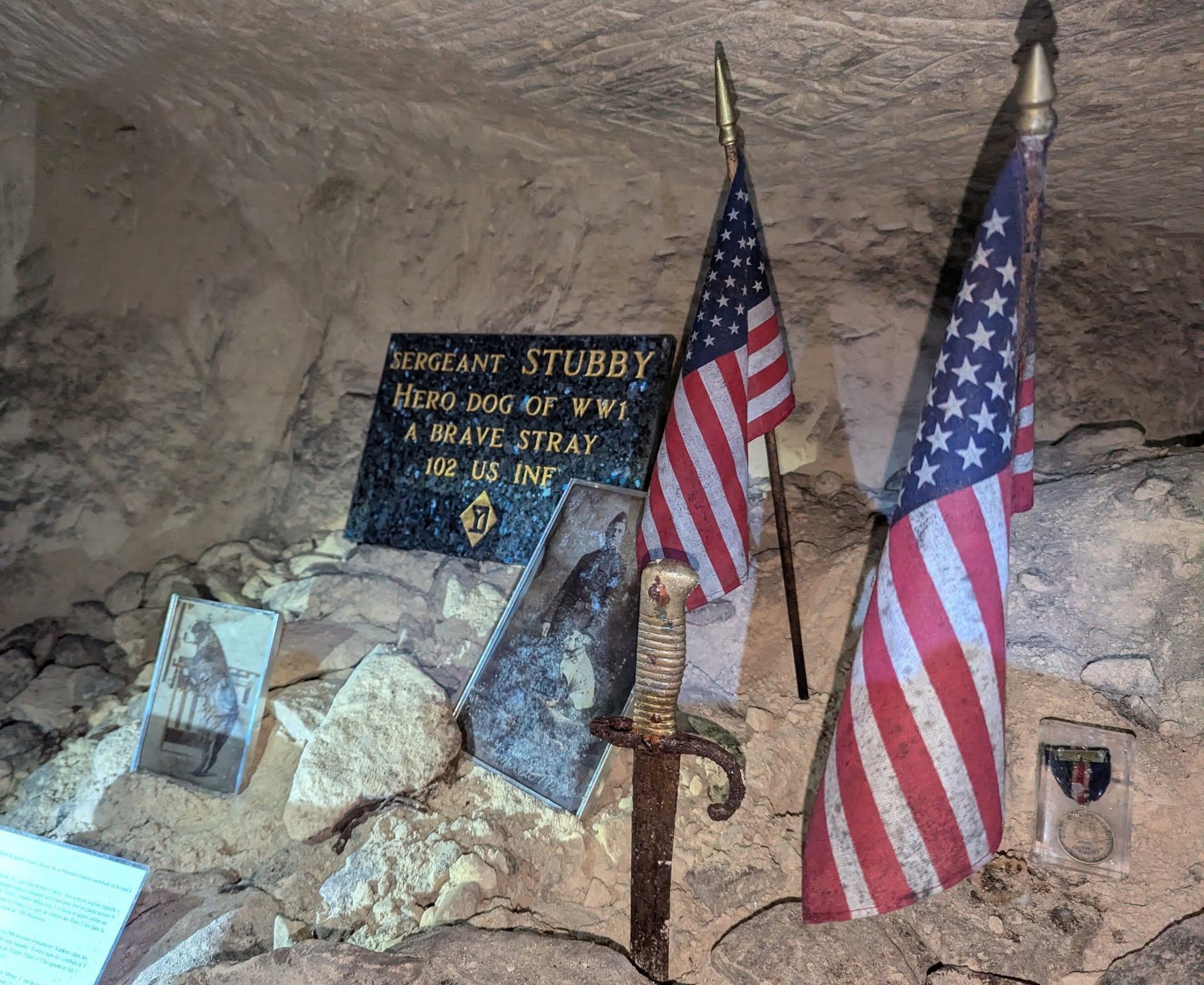 The site includes two memorials to the 26th Infantry Division that fought in the Chemin des Dames sector at the Froidmont Quarry: a monument, and a plaque remembering the famous dog mascot of the 102nd Infantry Regiment, Sergeant Stubby.