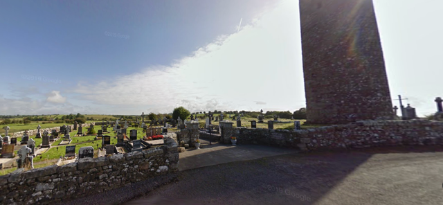 The site is located in the Meelick Cemetery in Meelich, County Mayo, Ireland. The site is near the town of Swinford and is adjacent to the Meelick Round Tower.