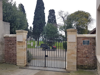 Inside the cemetery is the isolated burial of Sailor John Heugh Crampton who died during World War I.