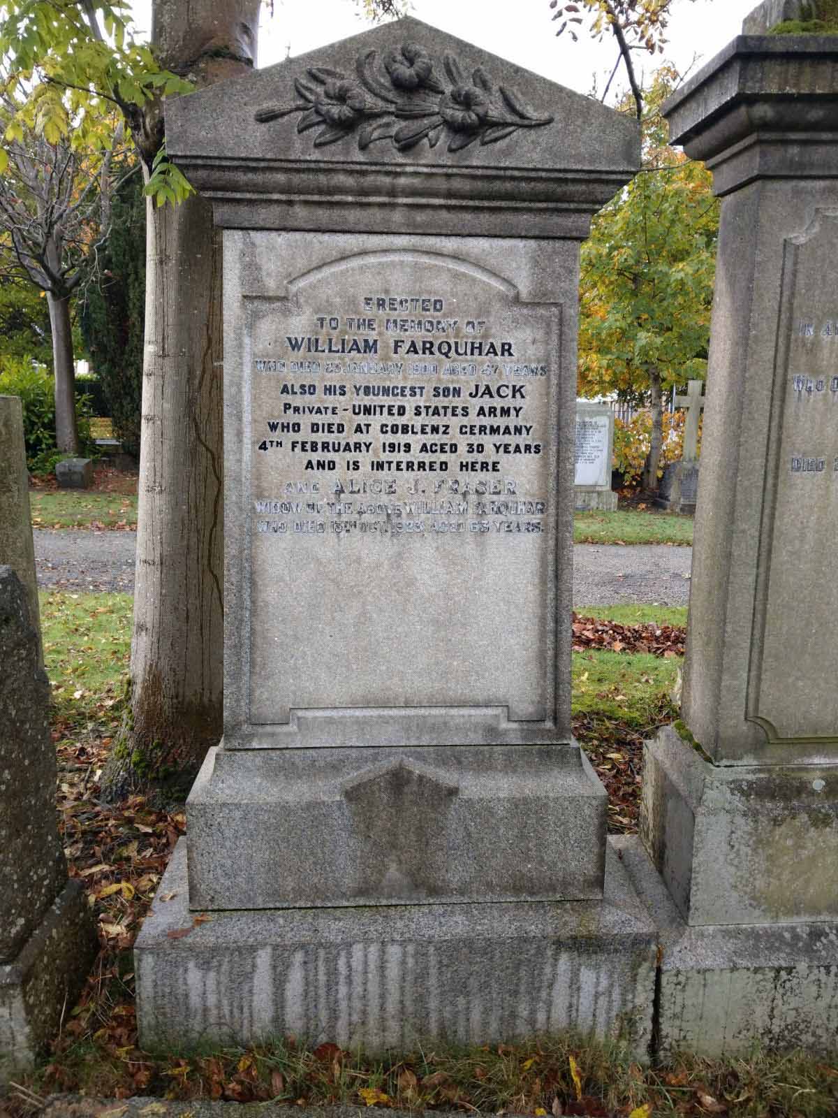Inside the cemetery is the isolated burial of Private John Farquhar, a Scotland-born soldier who served in the U.S. Army during World War I.