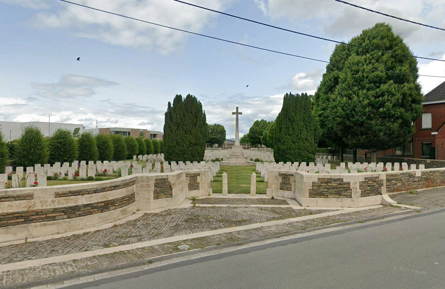 The Harlebeke New British Cemetery is situated about 1.1 km northeast of Harlebeke town hall, at the Deerlijksesteenweg and Groot-Brittanjelaan junction.