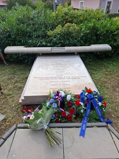 The site is located in front of the Town Hall/library in Kašava, Czechia. Kašava is a village in Zlín District in the Zlín Region. The site is along the Main Street in the village in front of the town hall. An older memorial remembering these crewman is located in the town churchyard nearby.