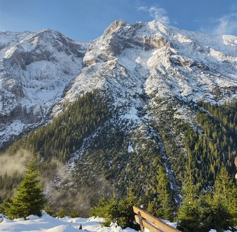 The site is located on a mountain trail under the Hohe Monde Massive in the locality of Klamm in the town of Leutasch, Austria. The site is located in the Gaistal about 5 kilometers from Leutasch along a mountain trail. The site is next to a bench.