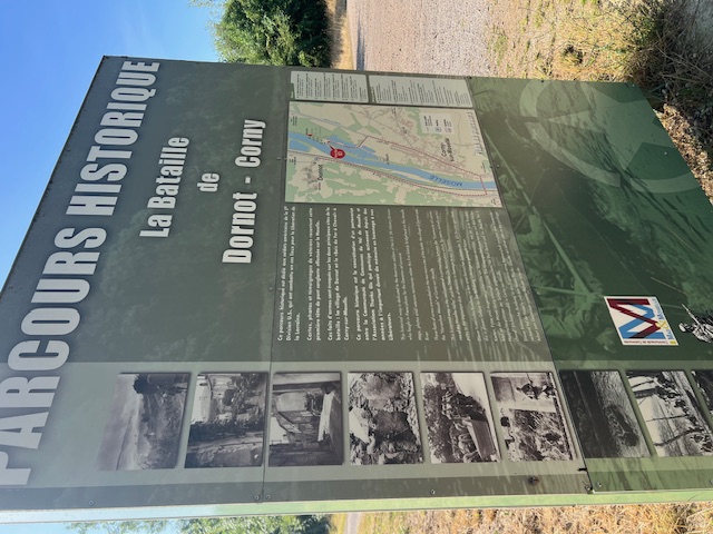 The site includes several memorials remembering the Dornot Bridgehead crossing of the Moselle River in September 1944 by the 5th Infantry and 7th Armored Divisions and the Battle of Metz during WW2.