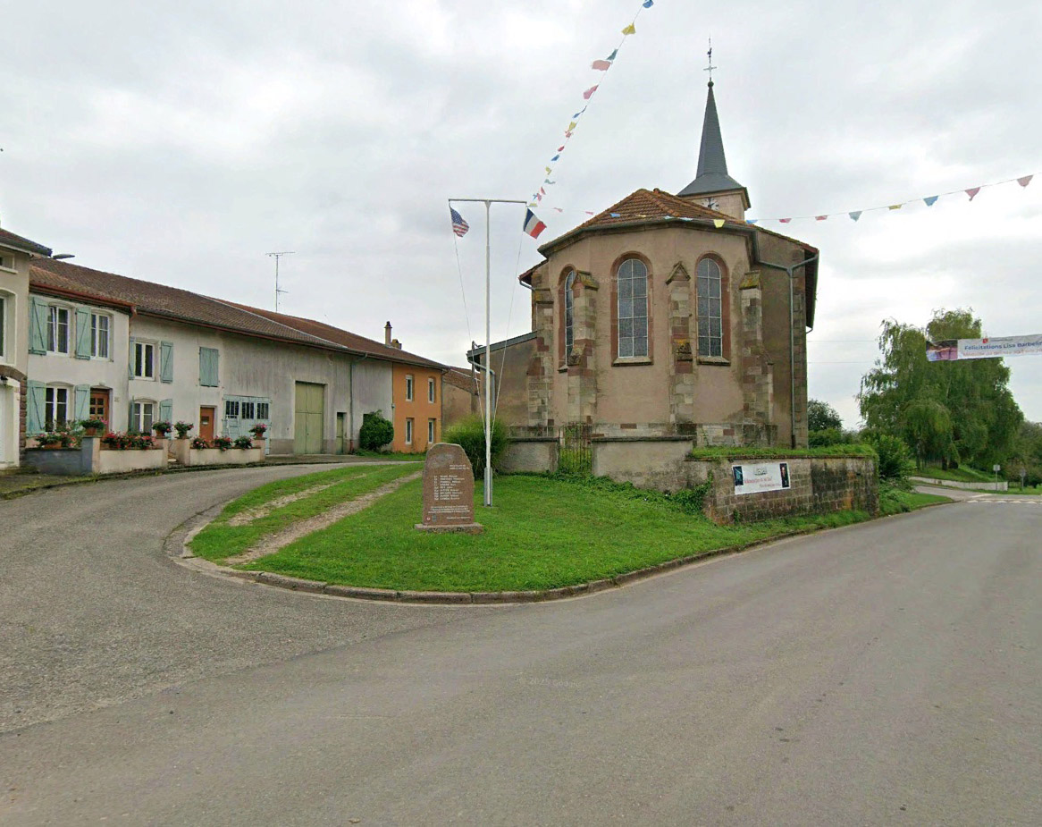 From Nancy take the D674 NE to Chateau-Salins then head SE on the D955. Turn SW on the D22 at the Ley town hall and follow the road until you see the church and monument on the S side at the Rue Prinicipale fork.