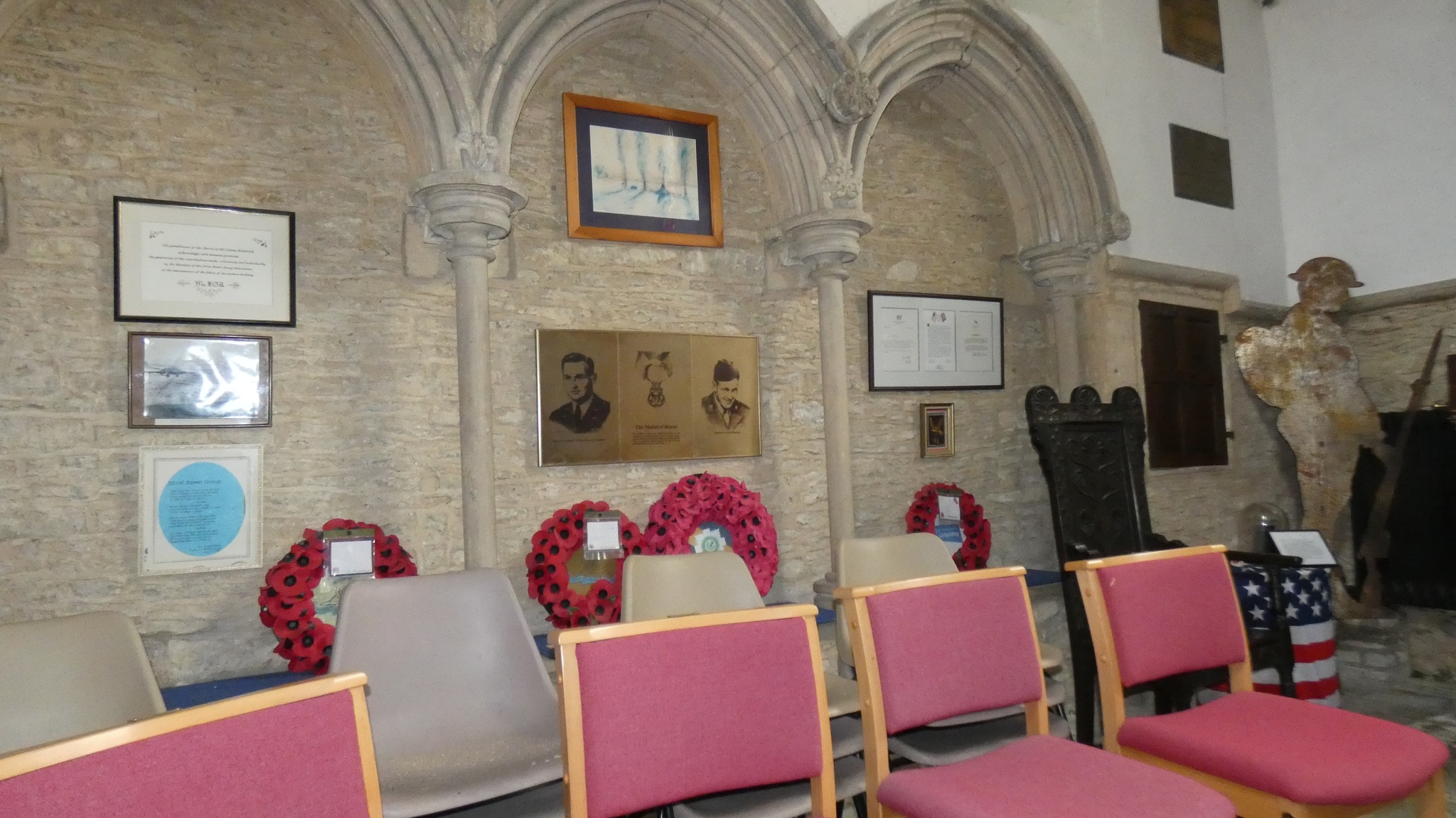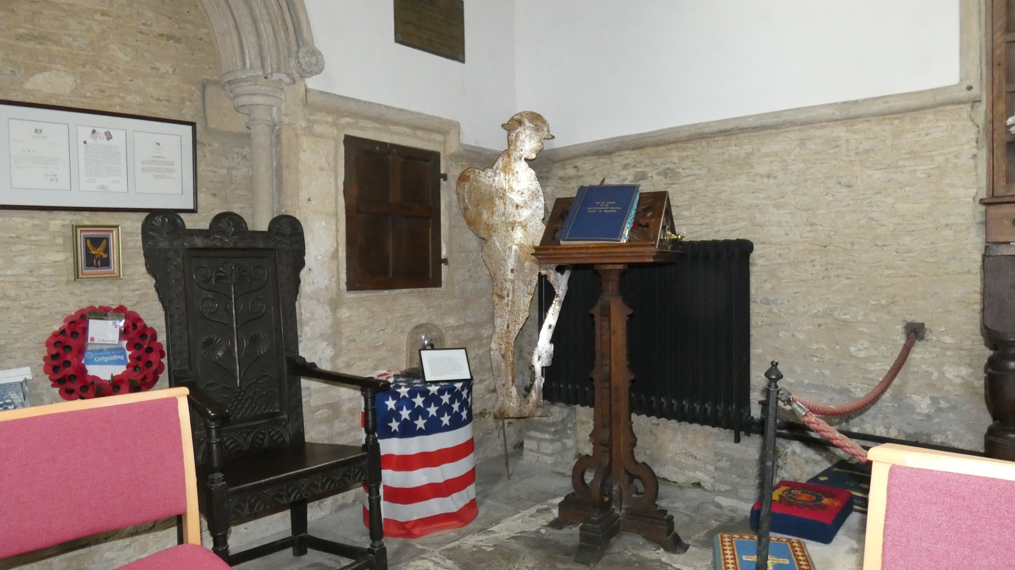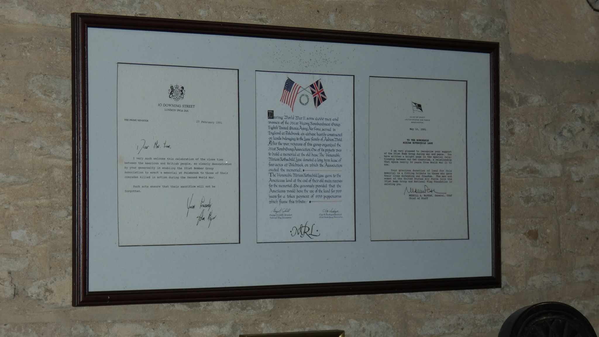 The items remember the B-17 B-17 'Ten Horsepower' #42-31763 of the 510th Bomber Squardron, 351st Bomber Group which crashed at the nearby Polebrook Airfield (USAAF 110) on February 20, 1944; two members of the crew were awarded the Medal of Honor for their actions on that day.