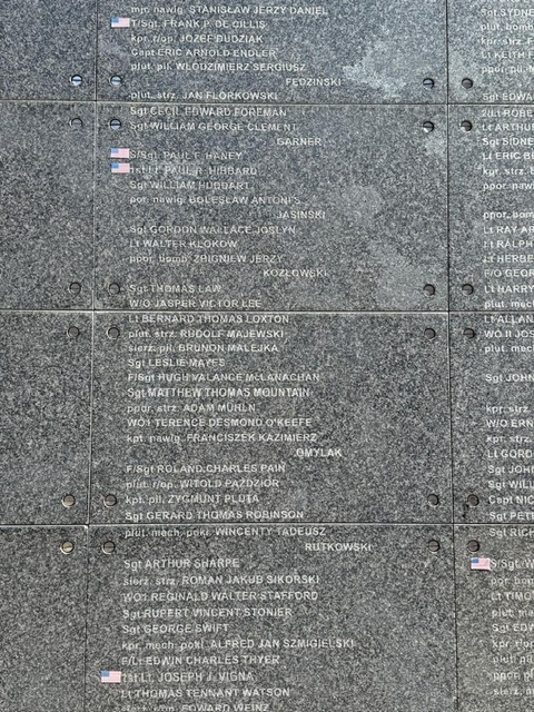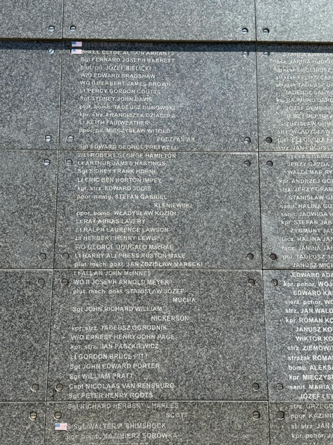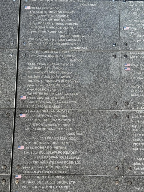 The list of the Allied airmen who perished at the time of the Warsaw Rising whose names are engraved in the Memorial Wall that stands in the Freedom Park in Warsaw and includes 12 Airmen. (See below for the list of the 12.)