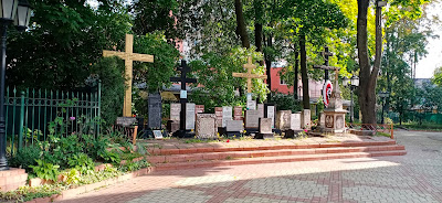 MonumentA rectangular upright stone stele, inscribed in Russian, commemorating American soldiers, officers and Generals who lost their lives between 1914 and 1919 in World War I. The Reconciliation of the Peoples memorial at the Church of All Saints in Moscow was established between 1994 and 1998 by WWII veterans and others to honor victims of the world wars, the Russian Civil War, the Red Terror, the White movement, and the Cossacks. Several monuments were relocated there from the former Moscow City Mass Cemetery for those killed during World War I.