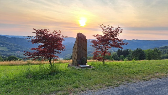 MonumentThe memorial includes a tall upright stone monument with the silhouette of a B-17 carved into the rock. An inscribed plaque at the base of the monument and an information board. This memorial is situated between the two actual aircraft crash sites.