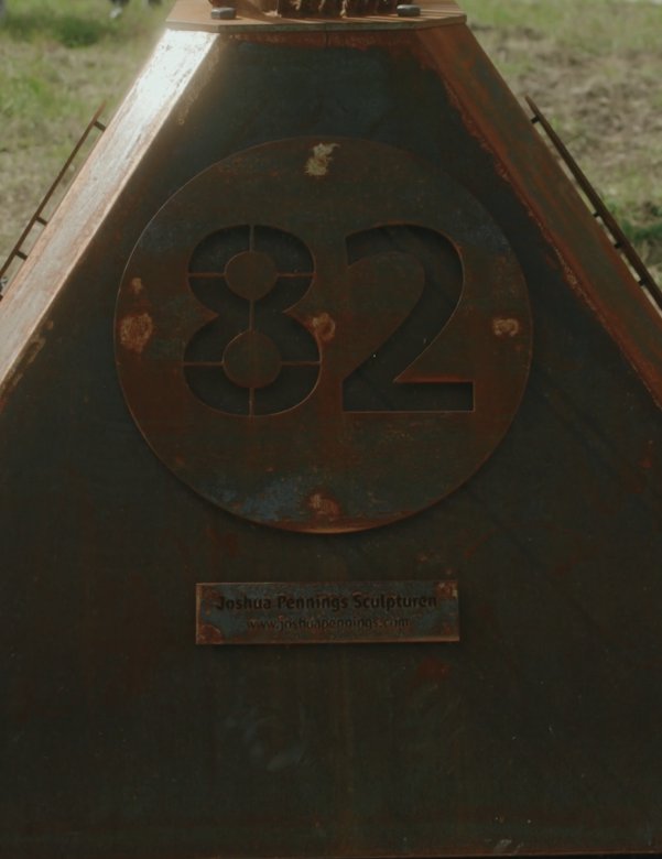 MonumentThe memorial comprises a four-meter-high statue in wrought iron. A stylized eagle, flying northeast toward Grave city center, forms the cupola of a parachute joined by suspension lines down to a four-sided pyramid-form base.