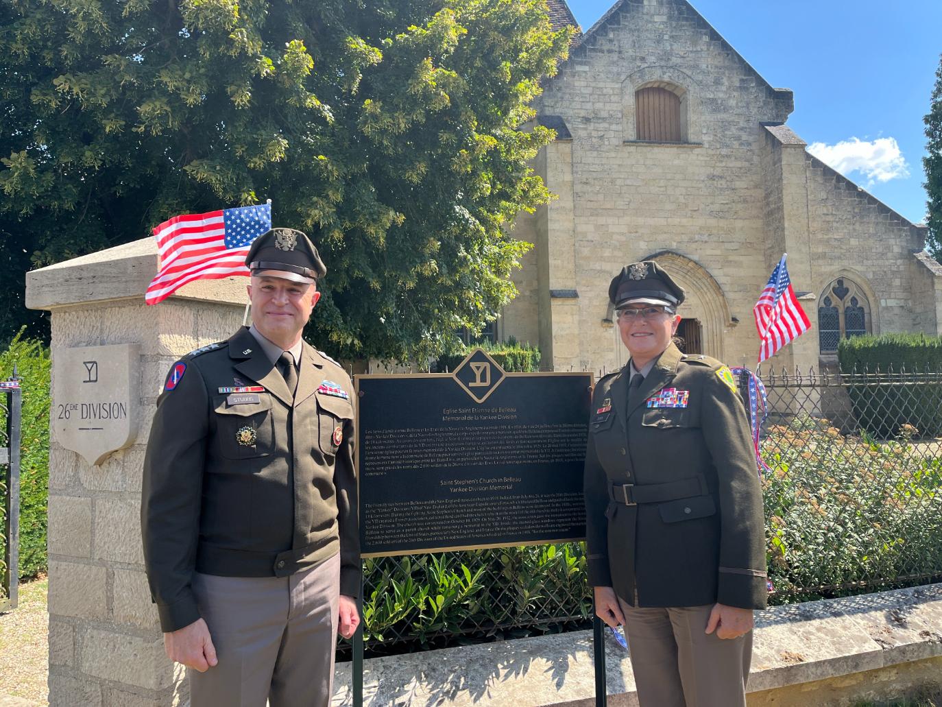 Les liens damitié entre Belleau et les États de la Nouvelle-Angleterre datent de 1918. En effet, du 4 au 26 juillet, cest la 26eme division, dite « Yankee Division », de la Nouvelle-Angleterre, du corps expéditionnaire américain, quilibère Belleau et repousse larmée allemande de 18 kilomètres. Au cours des combats, léglise Saint Étienne et la plupart des bâtiments de Belleau sont détruits. Dans les années 1920, les anciens combattants de la YD créent une association française, collectent des fonds et font reconstruire léglise sur le modèle de lancienne église pour en faire un mémorial de la Yankee Division. Léglise est consacrée le 10 octobre 1929. Le 20 mai 1932, lassociation donne le monument à la commune de Belleau pour servirdéglise paroissiale tout en restant un mémorial de la YD. Àlintérieur, les vitraux représentent lamitié historique entre les États-Unis, en particulier la Nouvelle-Angleterre, et la France. Sur les plaques scellées sur les murs, sont gravés les noms des 2 600 soldats de la 26eme division des États-Unis dAmérique morts, en France, en 1918, « pour la cause commune ».