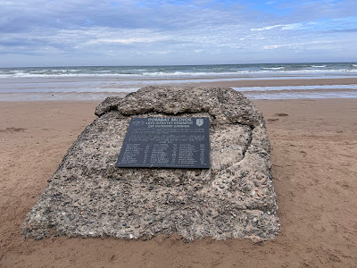 At this rock, SSgt Arnold "Ray" LAMBERT set up the first casualty collection point on Omaha Beach. In honor of the Combat Medics - men who placed their lives on the line to save their comrades. Their professionalism, dedication, and heroism gave their units the confidence to prevail in the face of extraordinary danger on D-Day.
