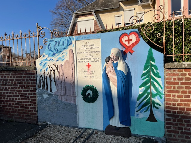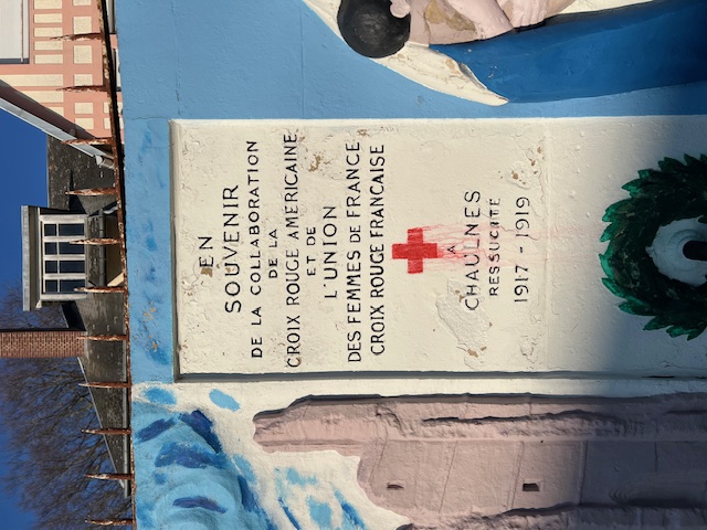 The memorial remembers the American and French Red Cross and the French union of nurses which operated in this town during World War 1.
