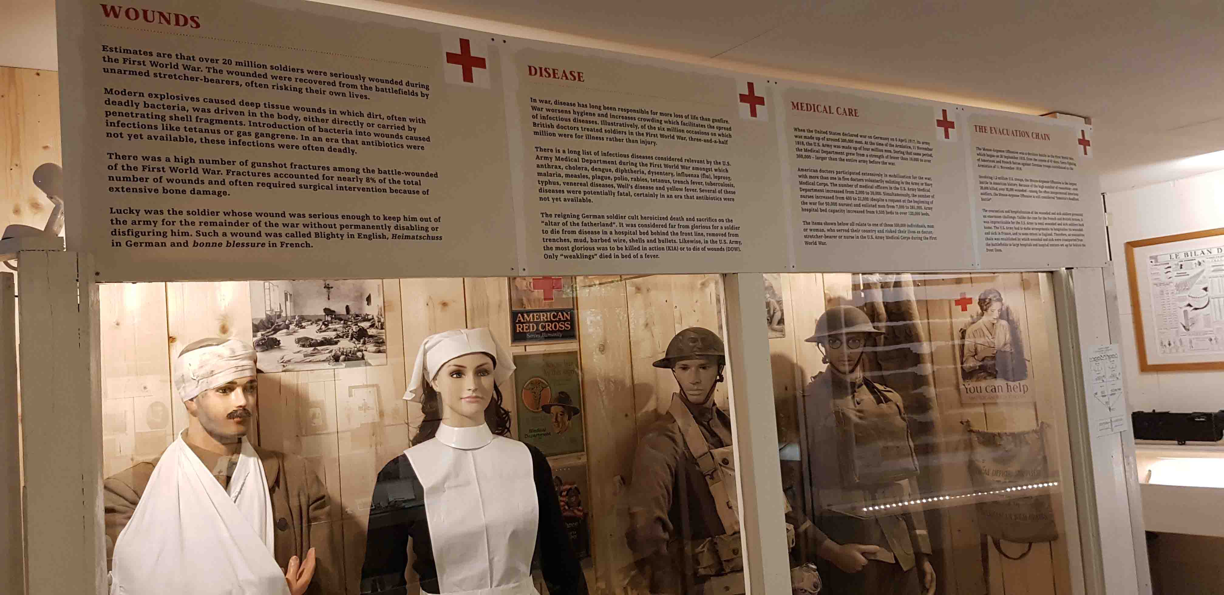 MuseumThe museum is dedicated to the men who fought in the Meuse-Argonne Offensive, which lasted from September 26 to November 11, 1918, and is largely focused on the American participation in World War I. More than one million American soldiers (Doughboys) came to France to take part in the fight. The collection is composed of relics, dioramas, uniforms, weapons, and personal items and tells the stories behind them. Part of the museum is dedicated to temporary exhibitions.