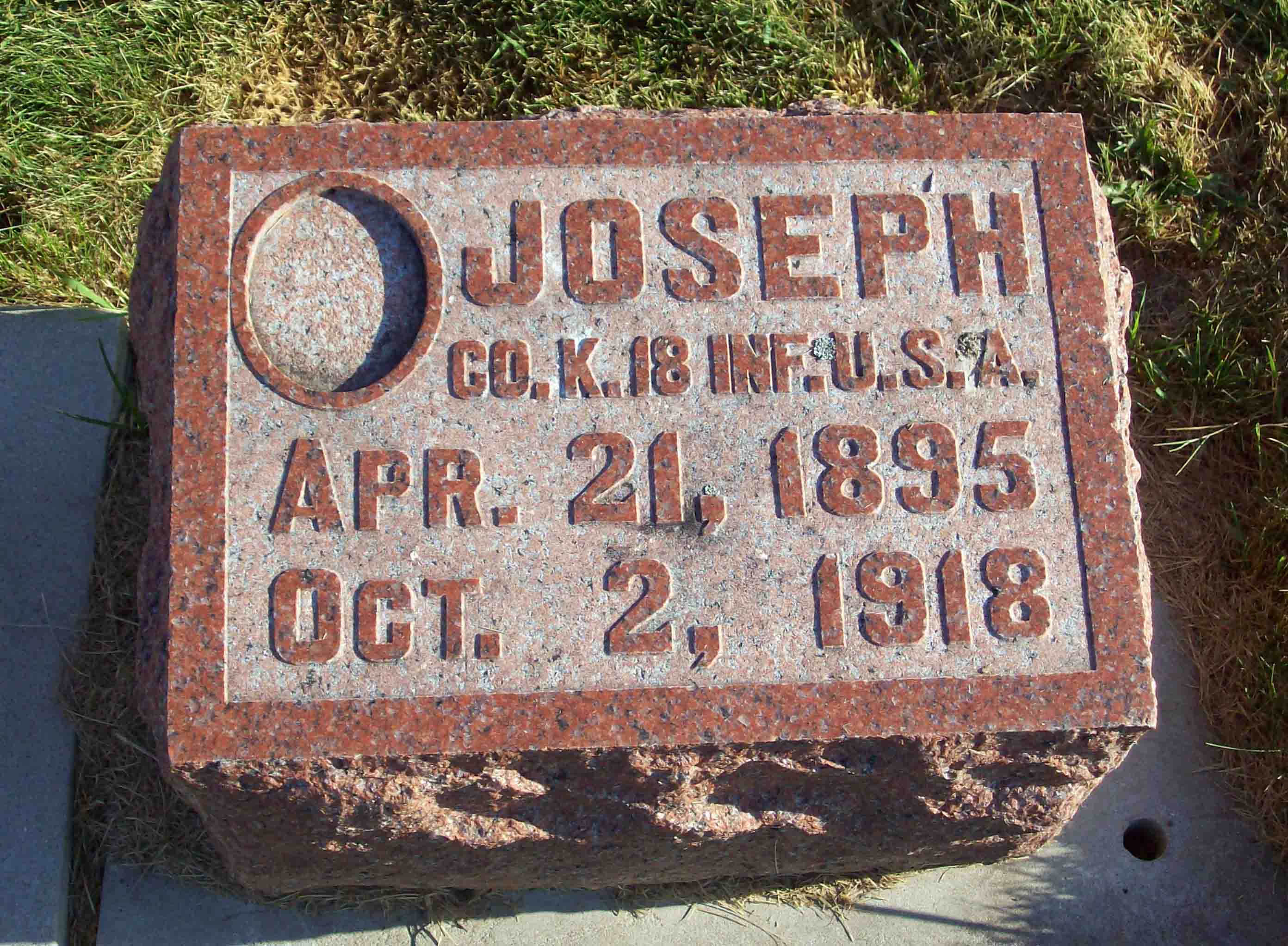 Joseph Spangler was born on April 21, 1895. His parents were August and Mary Theresa Gauthier Spangler. He served in the U.S. Army during World War I as a Private in Company K, 18th Infantry Regiment, 1st Infantry Division. He was Killed in Action on October 2, 1918 (at the age of 23) and is now buried in Saint Hubert Cemetery, Sugar Bush, Brown County, Wisconsin, USA.
