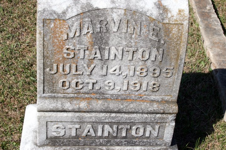 Marvin Everet Stainton was born on July 14, 1895. He was the son of Lafayette Stainton and Mary Hasseltine Stainton. He served in the U.S. Army during World War I as a Second Lieutenant in Company D, 28th Infantry Regiment, 1st Infantry Division. He was Killed in Action on October 9, 1918 and is now buried in Hickory Grove Cemetery, Laurel, Jones County, Mississippi, USA. He was awarded the Distinguished Service Cross.