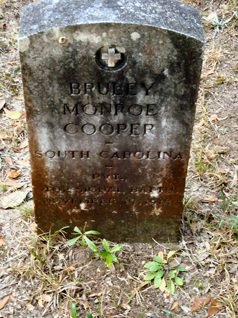Bruley Monroe Cooper was born in 1892 in Colleton County, South Carolina. He immediately volunteered when war was declared between Germany and the United States. He was sent to Camp Jackson as a lineman in the signal corps, where he remained until about six months ago, when he went to France. Before leaving Camp Jackson, he was promoted to Corporal. Bruley died in France November 19, of lobar pneumonia, in the 26th year of his age. He is now buried in the Live Oak Cemetery, Walterboro, Colleton County, South Carolina, USA. His rank is Private on his headstone.