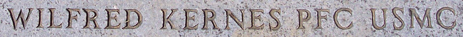 Wilfred Richard Kernes was born on October 28, 1919. He was the son of William Alexander Kernes and Nellie H. Kernes. Wilfred served in Company L, 3rd Battalion, 4th Marine Regiment as a Private First Class during World War II. An American prisoner of war, he was one of the Japanese massacre victims in Puerto Princesa, Palawan Philippines. In order to prevent the rescue of prisoners of war by the advancing Allies, on 14 December 1944, units of the Japanese Fourteenth Area Army (under the command of General Tomoyuki Yamashita) brought the POWs back to their own camp. An air raid warning was sounded to get the prisoners into the shelter trenches, the 150 prisoners of war at Puerto Princesa entered those trenches, and the Japanese soldiers set them on fire using barrels of gasoline. Prisoners who tried to escape the flames were shot down by machine gun fire. Others attempted to escape by climbing over a cliff that ran along one side of the trenches, but were later hunted down and killed. Only 11 men escaped the slaughter; 139 were killed. Those that did escape to southern Palawan, and eventual rescue, were aided by Filipino scouts and guerrillas under the command of Nazario Mayor. Of the victims, 123 are buried in a mass grave at Jefferson Barracks National Cemetery, St. Louis, Missouri, including PFC Kernes.