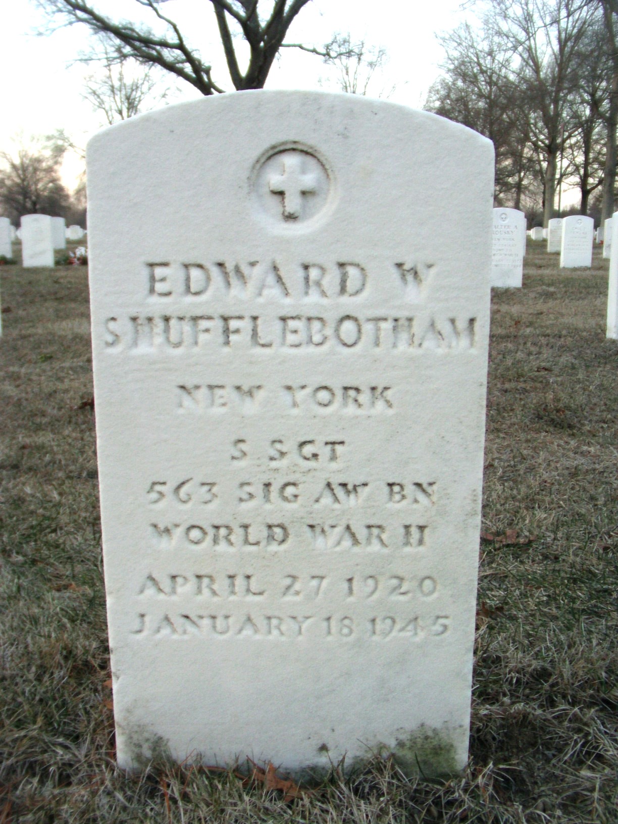 Edward W. Shufflebotham was born on April 27, 1920. At the time of his death, he was serving in the 563rd Signal Air Warning Battalion as a Staff Sergeant and a passenger on the C-47 #43-48611. On January 18, 1945, he was killed in an air crash when they took off from A-54 airfield in Le Bourget, France, to be transported to Station 343 in Biggin Hill, England. Due to an unknown reason, the aircraft crashed approximately 7 minutes later after they took off. Eighteen people were killed in this accident, while four were seriously injured.