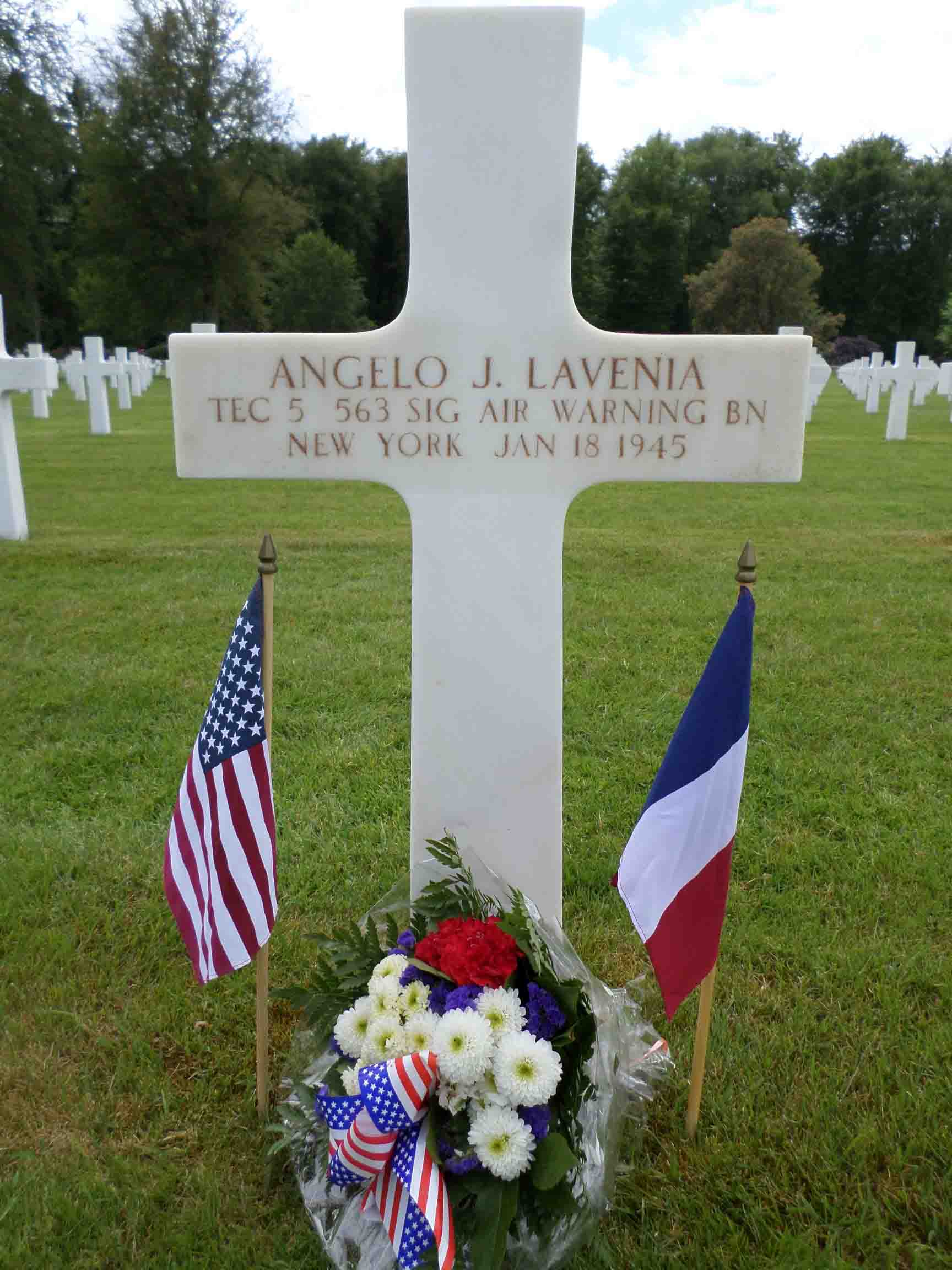 Angelo J. Lavenia was born in 1921. At the time of his death, he was serving in the 563rd Signal Air Warning Battalion as a Technician 5th Grade and a passenger on the C-47 #43-48611. On January 18, 1945, he was killed in an air crash when they took off from A-54 airfield in Le Bourget, France, to be transported to Station 343 in Biggin Hill, England. Due to an unknown reason, the aircraft crashed approximately 7 minutes later after they took off. Eighteen people were killed in this accident, while four were seriously injured.