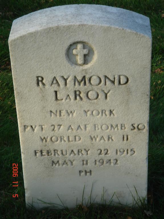 Pvt Laroy was among the American soldiers who lost their lives in captivity on May 11, 1942. He is now buried in the Long Island National Cemetery, East Farmingdale, Suffolk County, New York, USA.