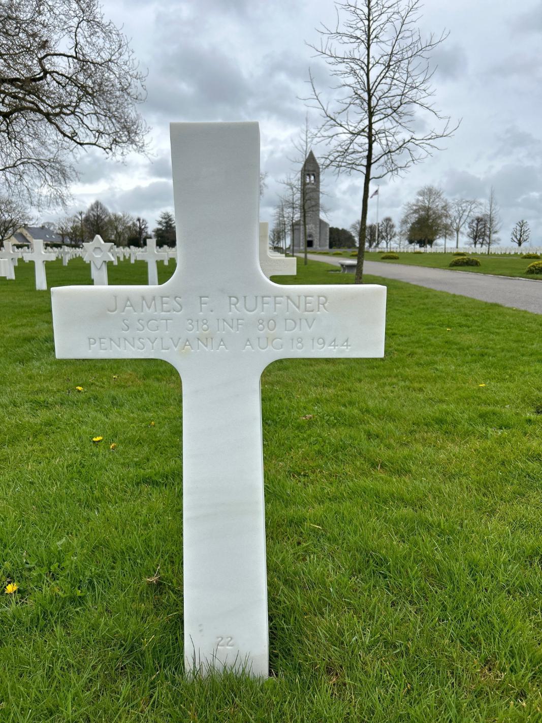 SSgt Ruffner was Killed in Action on August 18, 1944, during the liberation of Argentan, France. He is now buried in the Brittany American Cemetery and Memorial, Saint-James, Departement de la Manche, Basse-Normandie, France.