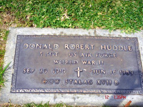 Sgt Huddle was taken as a prisoner of war and held at Stalag 17B in Braunau Gneikendorf. He ended his military service as a Staff Sergeant in the United States Air Force. He died on June 16, 1989, and is now buried in the Oakwood Memorial Park, Chatsworth, Los Angeles County, California, USA.