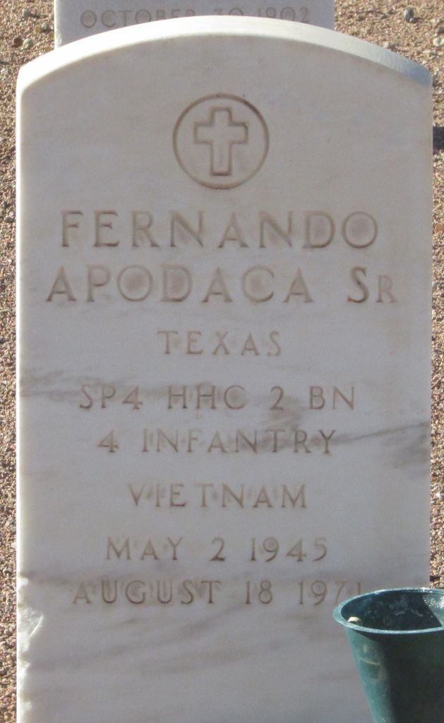 SP4 Apodaca was among the passengers on board and now rests at Fort Bliss National Cemetery, El Paso, El Paso County, Texas, USA.