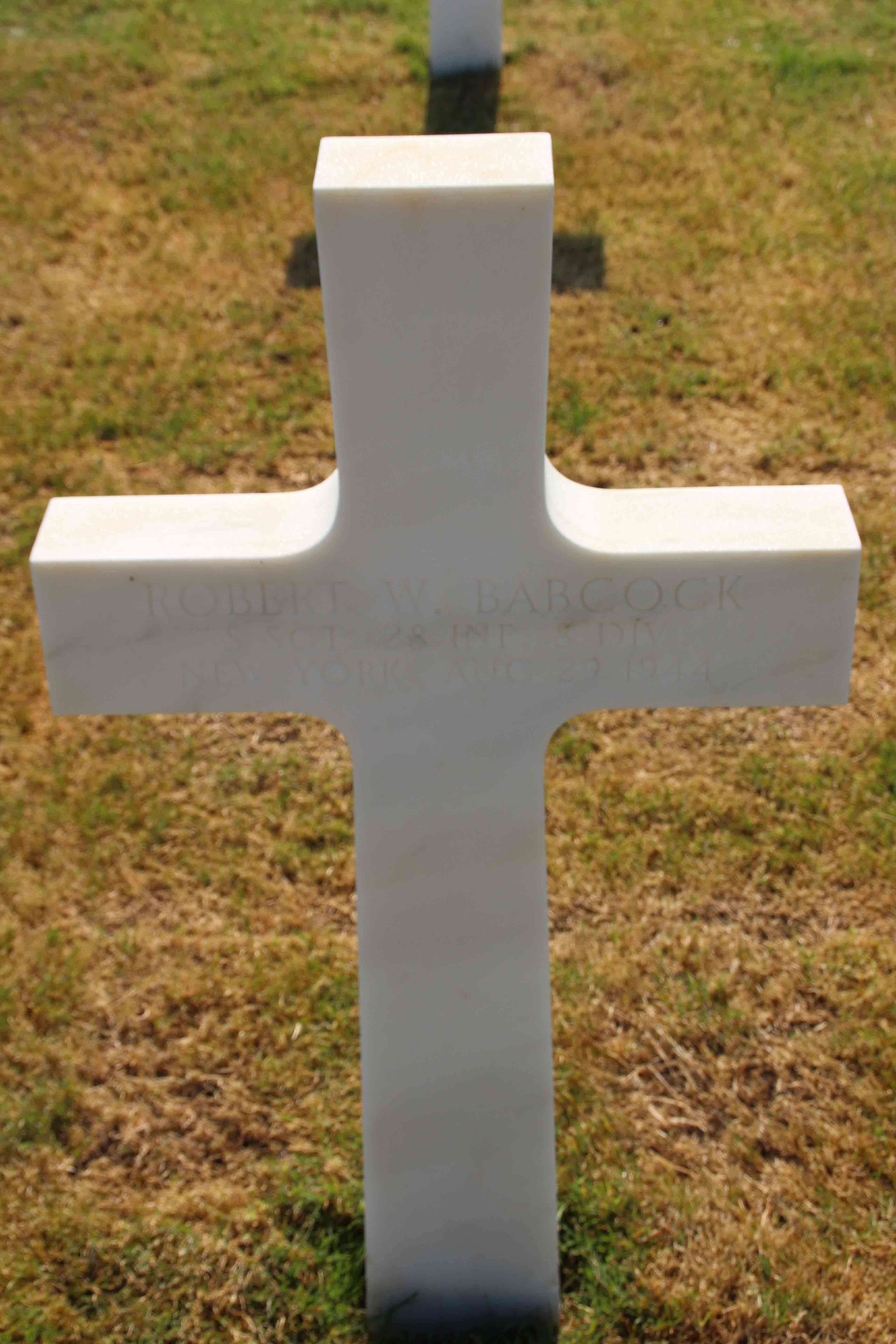 SSgt Babcock was Killed in Action on August 29, 1944, during the Battle of Brest, France. He is now buried in the Brittany American Cemetery and Memorial, Saint-James, Département de la Manche, Basse-Normandie, France. He also has a cenotaph in the Liberty Park Cemetery, Cattaraugus, Cattaraugus County, New York, USA.