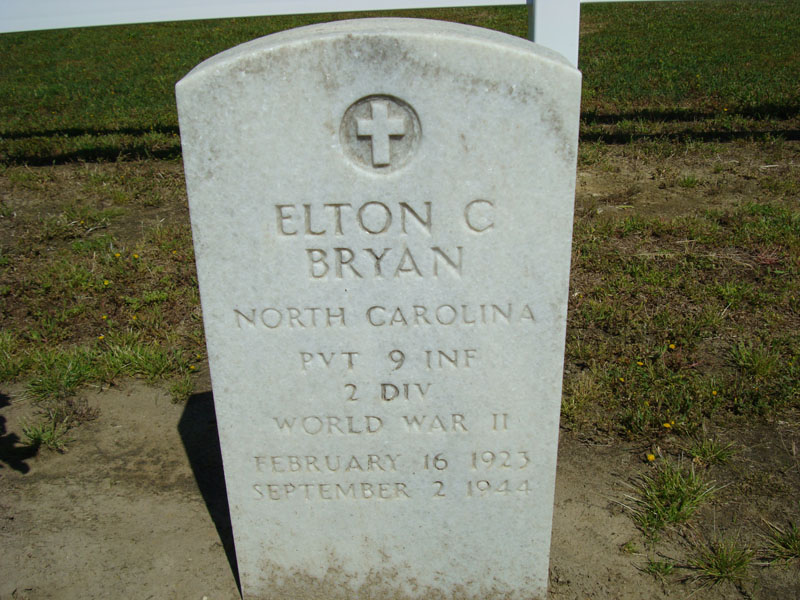 Elton Council Bryan was born on February 16, 1923, in Richlands, Onslow County, North Carolina. He was the son of Wright William Bryan and Annie Raynor Bryan. He served in the 9th Infantry Regiment, 2nd Infantry Division, as a Private during World War II.