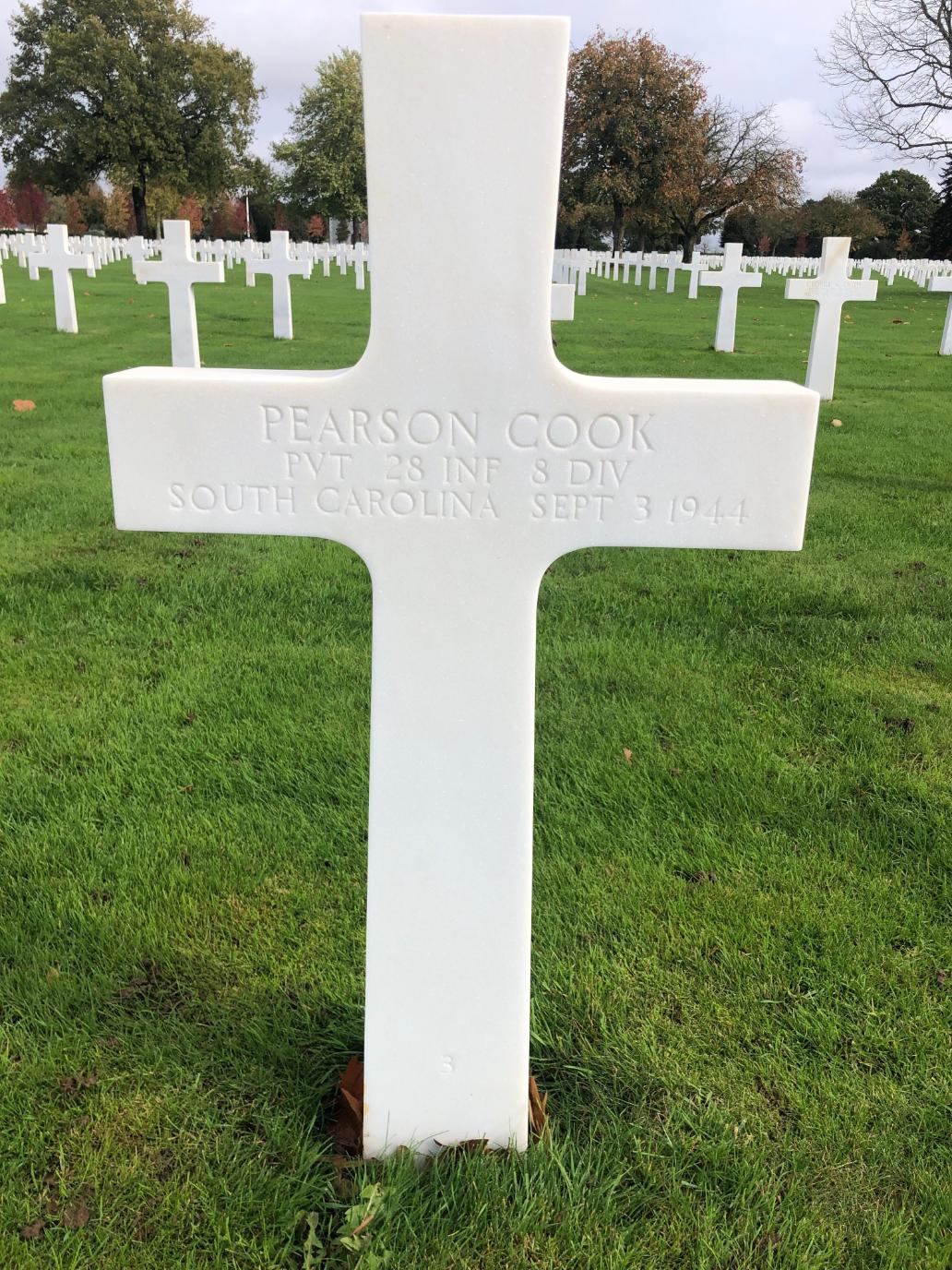 Pvt Cook was Killed in Action on September 3, 1944, during the Battle of Brest, France. He is now buried in the Brittany American Cemetery and Memorial, Saint-James, Département de la Manche, Basse-Normandie, France.