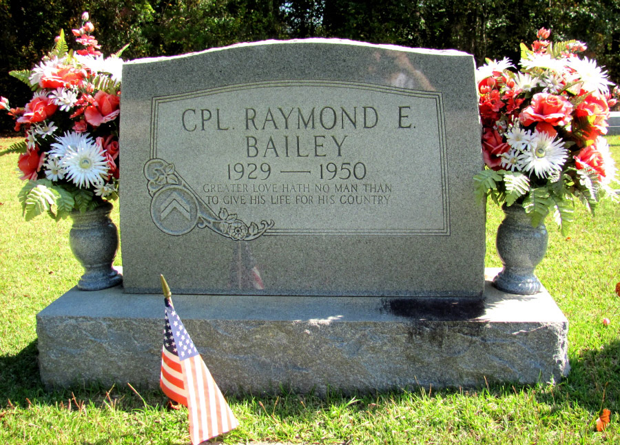 Raymond Eugene Bailey was born in 1929 in Fayette County, Alabama. He was the son of Mansel Garett "Jack" Bailey and Era Odessa Phipps Bailey. He served in the 21st Infantry Regiment, 24th Infantry Division, as a Corporal and Light Weapons Infantryman during the Korean War.