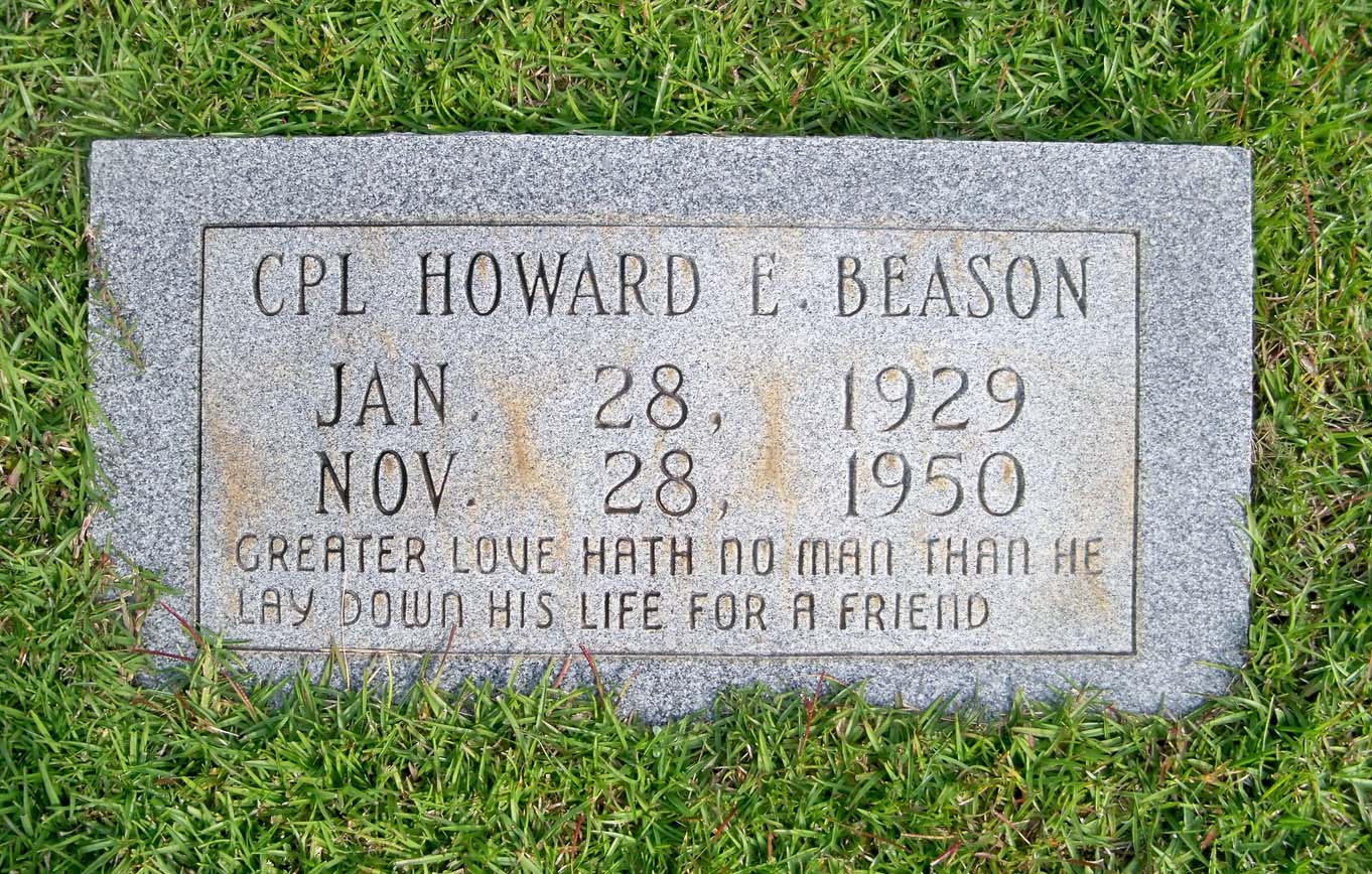 Howard E. Beason was born on January 28, 1929, in St. Clair County, Alabama. He was the son of Huston E. Beason and Annie B. Beason. He served in the 3rd Battalion, 5th Marines, 1st Marine Division, as a Corporal during the Korean War.