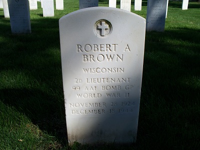 Robert A. Brown was born on November 28, 1924, in Chicago, Cook County, Illinois. He was the son of Albert H. Brown and Johanna "JoAnn" Brand Calo. He served in the 347th Bomber Squadron, 99th Bomber Group, Heavy, as a Second Lieutenant and Co-Pilot of B-17G #42-32097 nicknamed "Slipstream" during World War II.