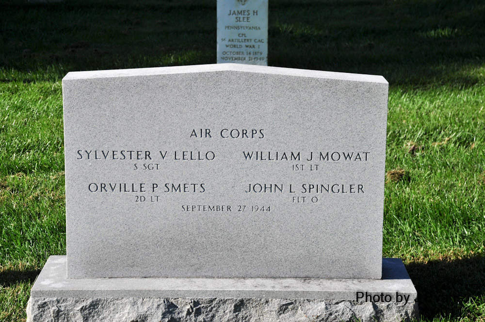 SSgt Lello was killed in action and is now buried alongside his fellow crew members, 1Lt Mowat, 2Lt Smets, and FO Spingler at Arlington National Cemetery in Arlington, Arlington County, Virginia, USA. He also has a cenotaph in Denison Cemetery, Pennsylvania.