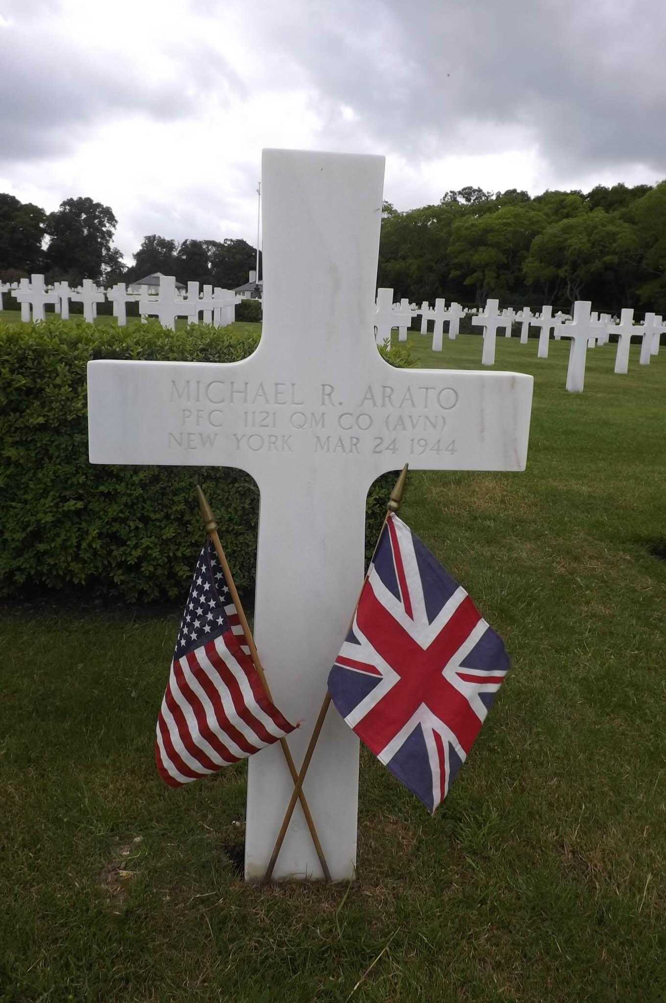 PFC Arato was among those killed when a PFF aircraft crashed into the barracks while they were asleep. He is now buried in the Cambridge American Cemetery and Memorial, Coton, South Cambridgeshire District, Cambridgeshire, England.