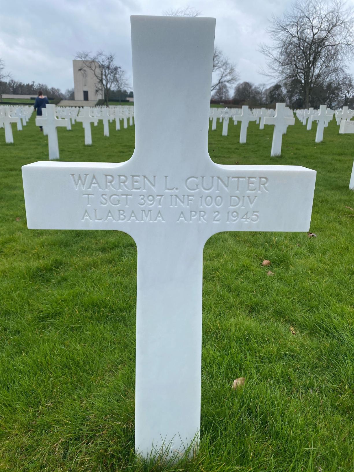 TSgt Gunter was Killed in Action on April 2, 1945, in Germany. He is now buried in the Lorraine American Cemetery and Memorial, Saint-Avold, Département de la Moselle, Lorraine, France.