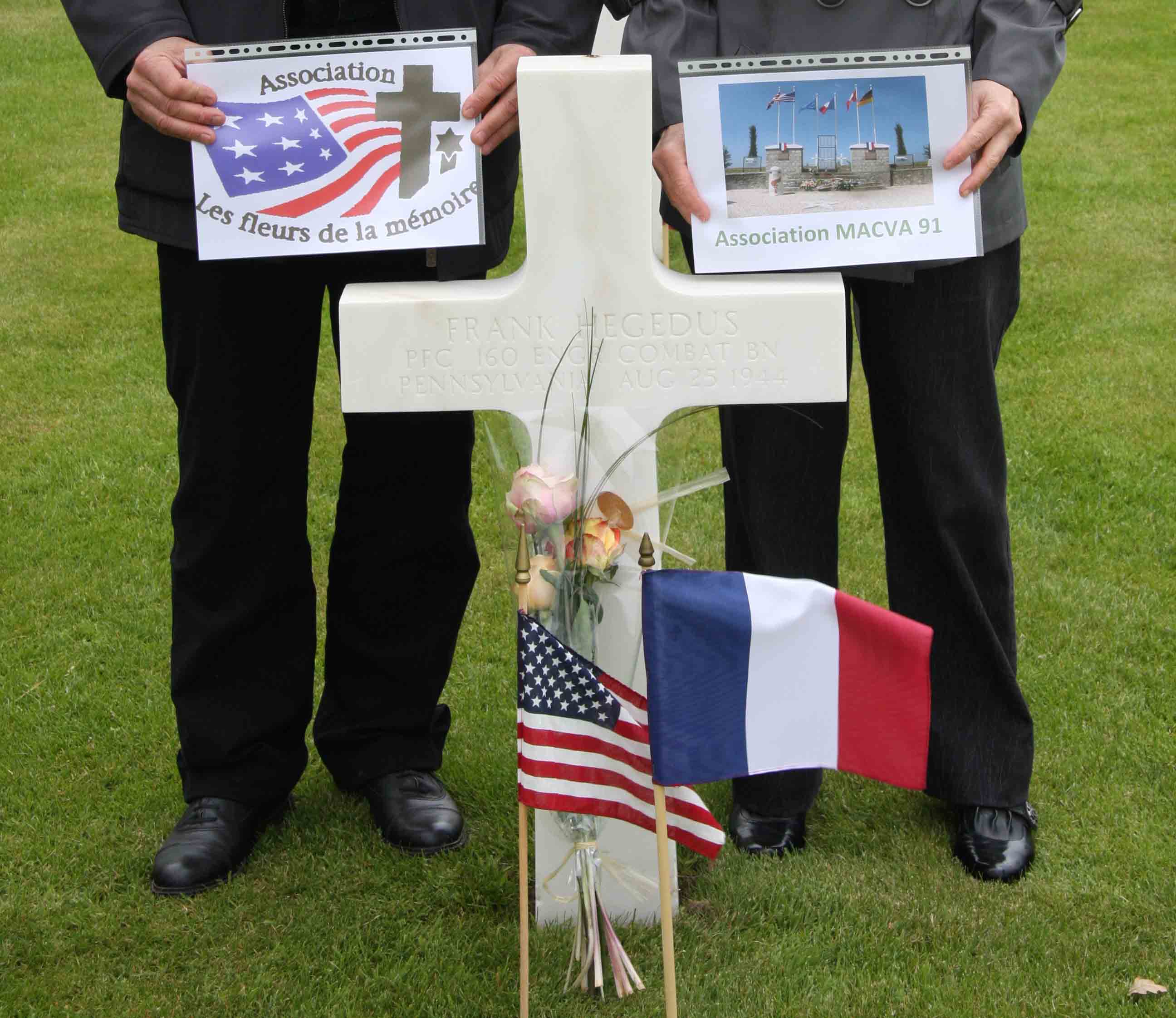 Frank Hegedus was born on June 26, 1924 in Vintondale, Cambria County, Pennsylvania, USA. He served in the U.S. Army during World War II as a Private First Class in the 160th Engineer Combat Battalion. He entered service in Pennsylvania. He died on August 25, 1944, was initially buried at Villeneuve-sur-Auvers in France and is now buried at Brittany American Cemetery, St. James, France.