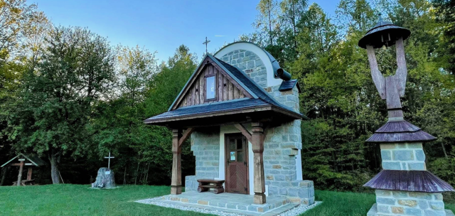 The site is located along a marked wooded trail near Kašava, Czechia. Kašava is a village in Zlín District in the Zlín Region. The site is about 1.5 kilometers northeast of village center near a small chapel along the trail; it is known locally Poutní místo ke cti Panny Marie Královny.
