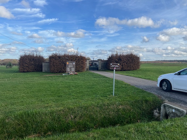 The cemetery is situated about 650 meters southeast of the Mouacourt town hall and about 350 meters from the junction of Grande Rue and Chemin de Norzelieure.