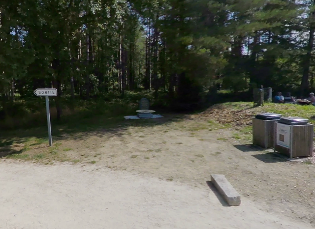 The site is located on a campground roadway that circled a pond named Étang de la Grenouillère in Évran, near Saint-André-des-Eaux, France. The local area is known as "Bétineuc". The site is adjacent to a camp ground.