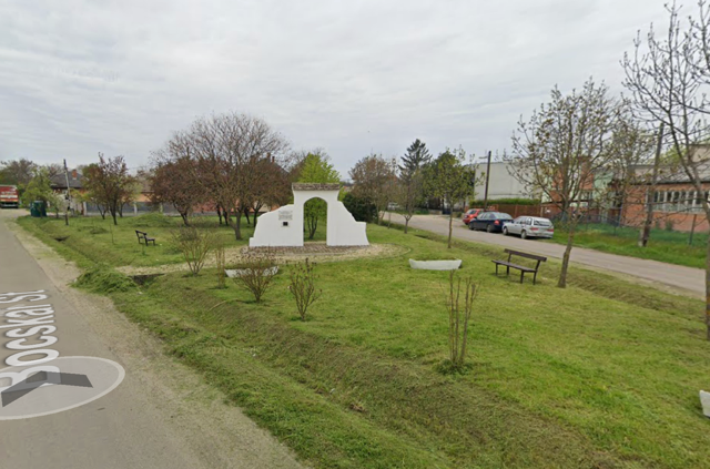 The site is located in the town of Karag, Hungary. The site is in the median strip of the road and located near the intersection of Liliom and Bocska streets. The site is west of town center and is know locally as Kovats Kapunal.